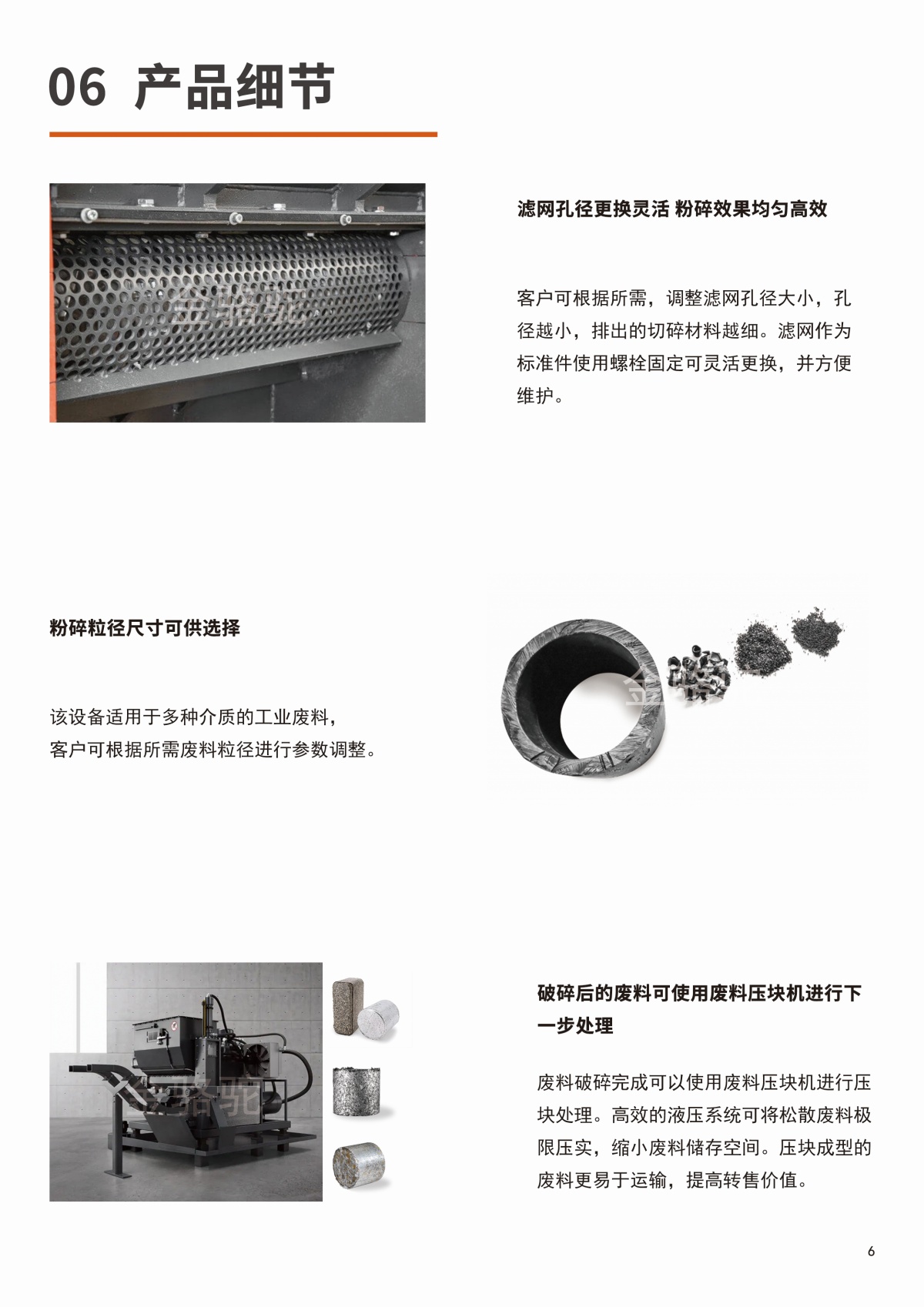 1、將廢料破碎,有效減少儲存空間并顯著(zhù)提高轉售價(jià)值;